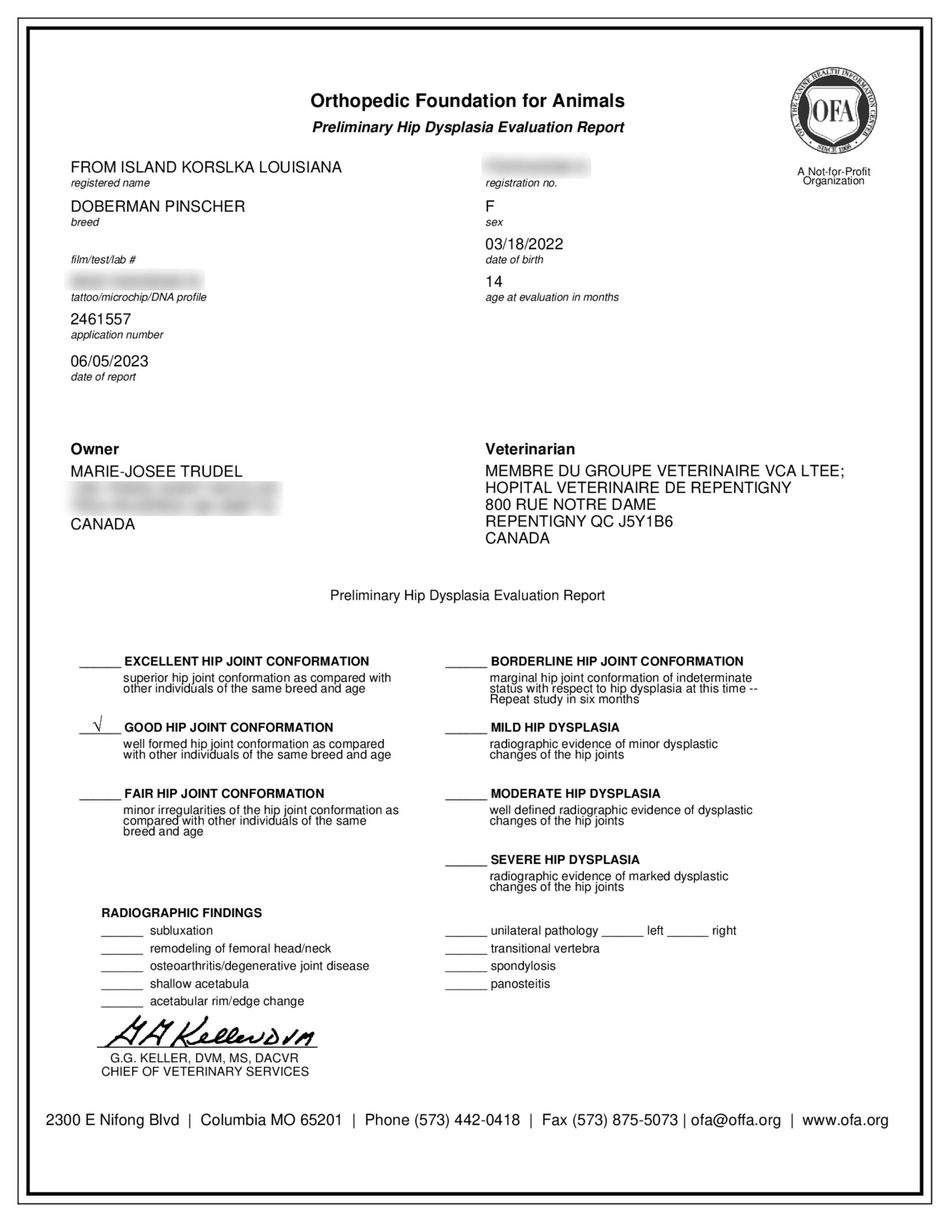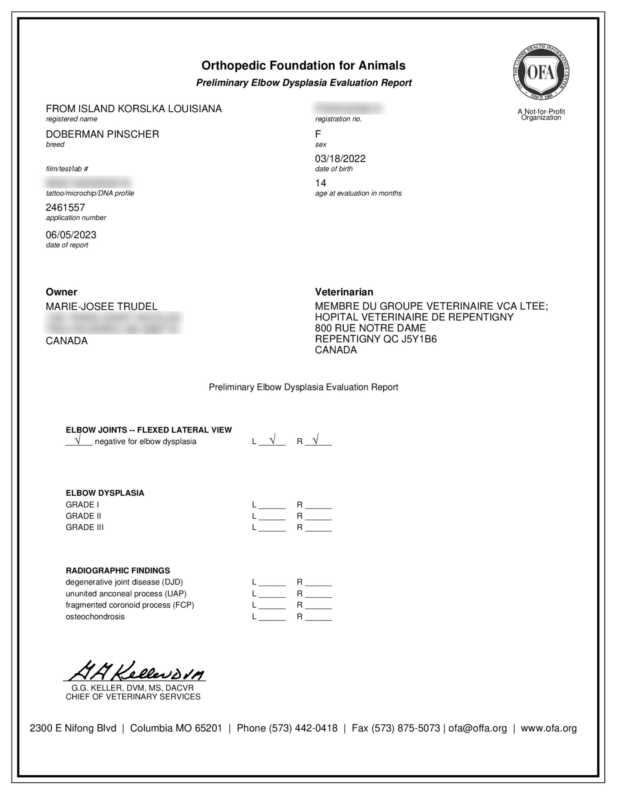 | Echocardiogram | Clear / Normal, certified by Dr. Amelie Beaumier |
